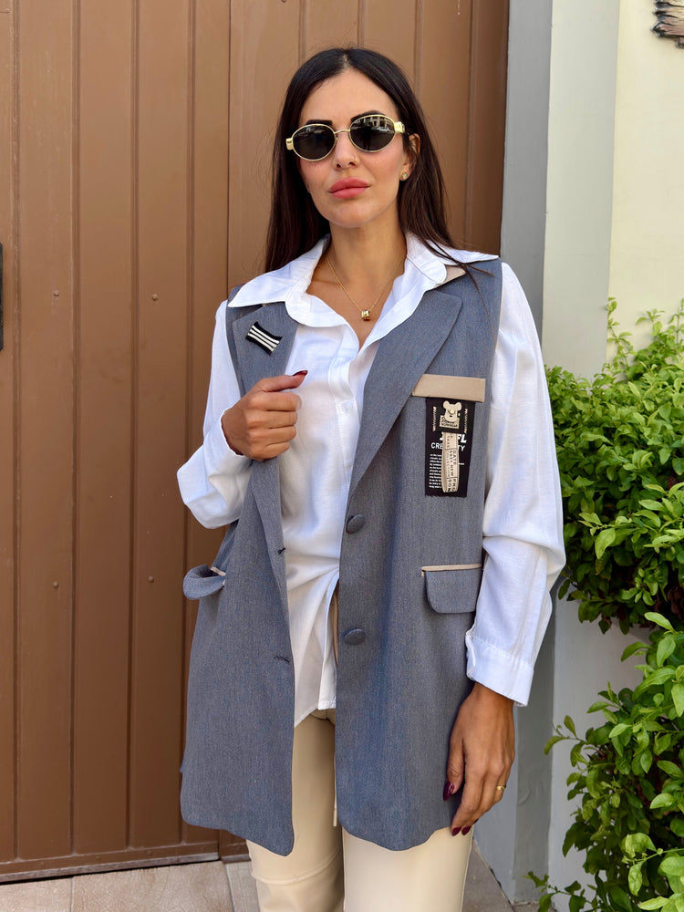 Grey Waistcoat Blazer Set