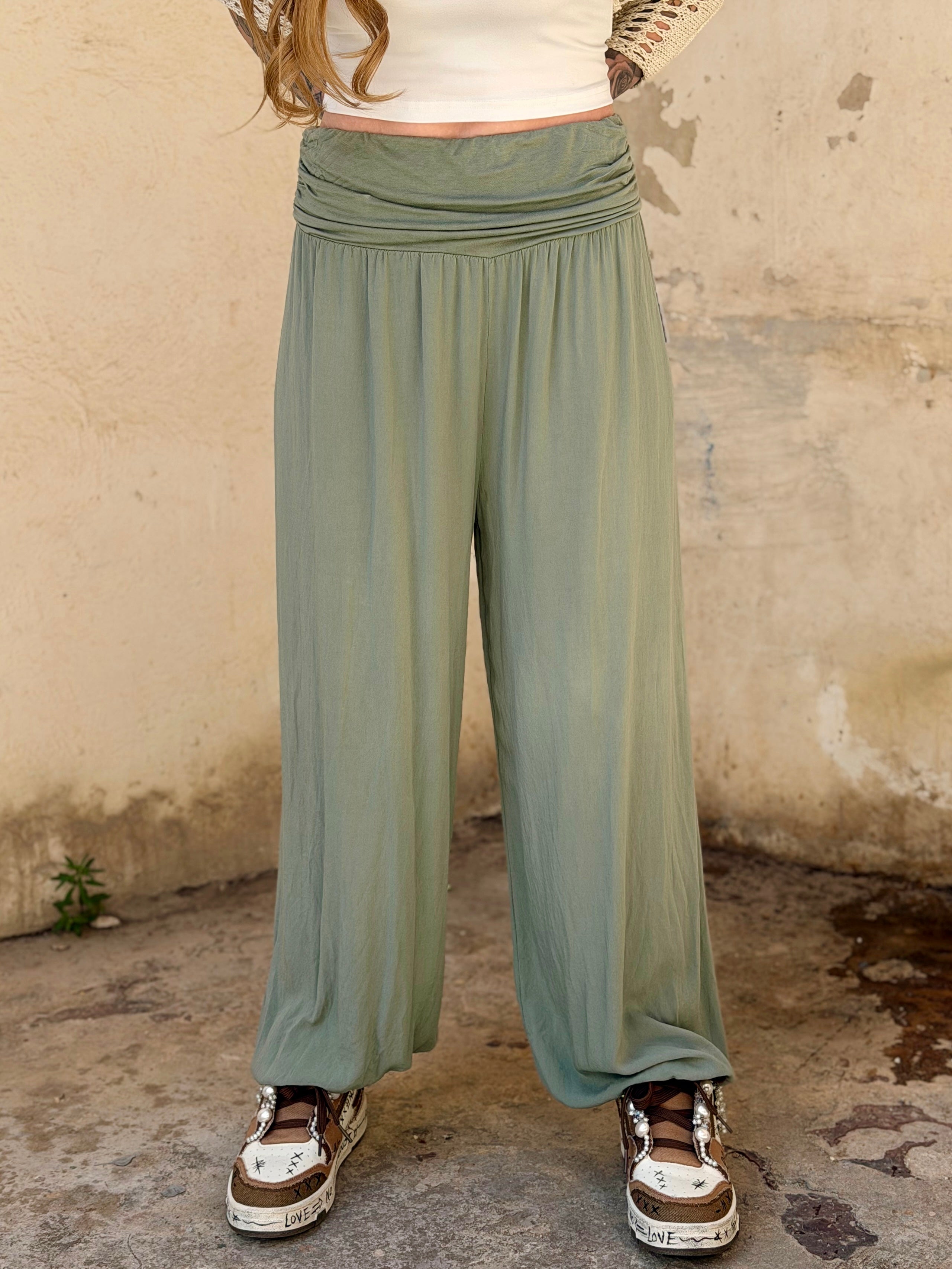 Ultra-soft viscose trousers designed with a flattering smooth waistband and relaxed wide-leg silhouette, finished with a subtle elasticated ankle for effortless shape. Lightweight and fluid with a luxe feel, they offer all-day comfort while keeping your look polished and modern—perfect for both casual styling and elevated everyday wear.