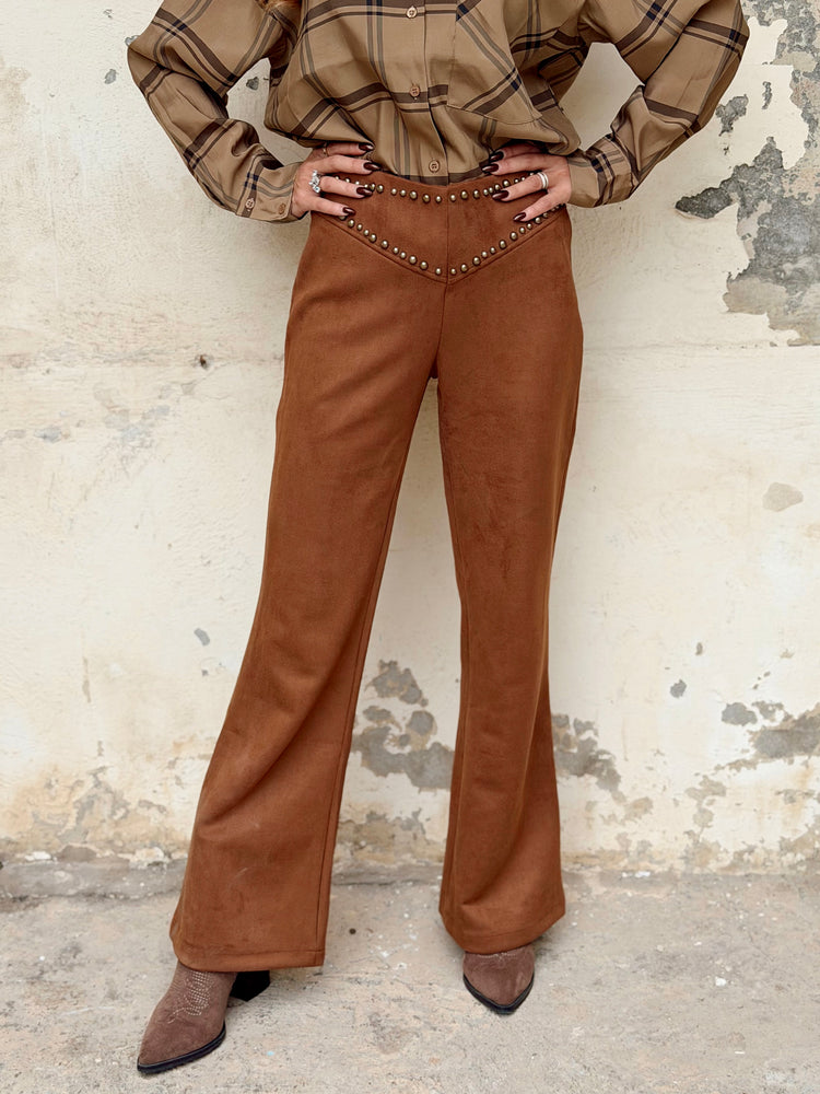 The Milano Stretch Faux Leather Flares - Mocha Taupe